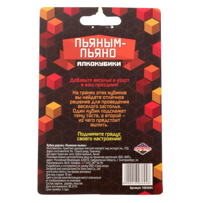Купить кубик "пьяным пьяно", алкокубики для принятия решений от 60 руб. с доставкой до пункта выдачи в Мариинском Посаде. Интернет магазин ДекаМаркет. Оплата при получении.